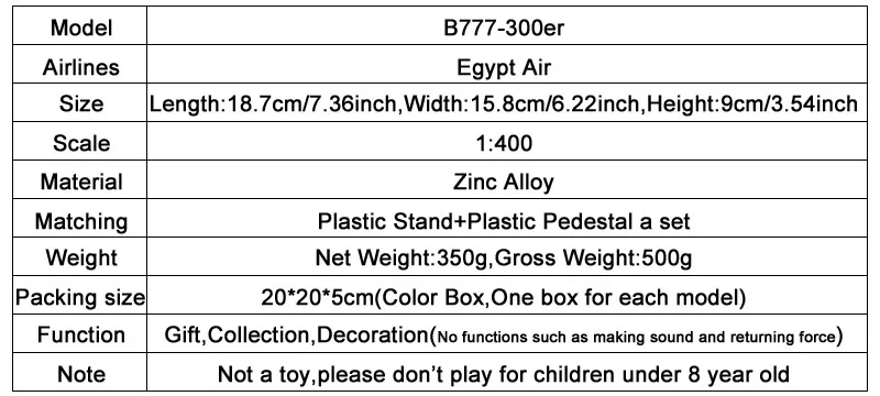 مجسم طائرة بوينغ B777-300ER نموذج طيران 18.5 سنتيمتر مع عجلات طائرة
