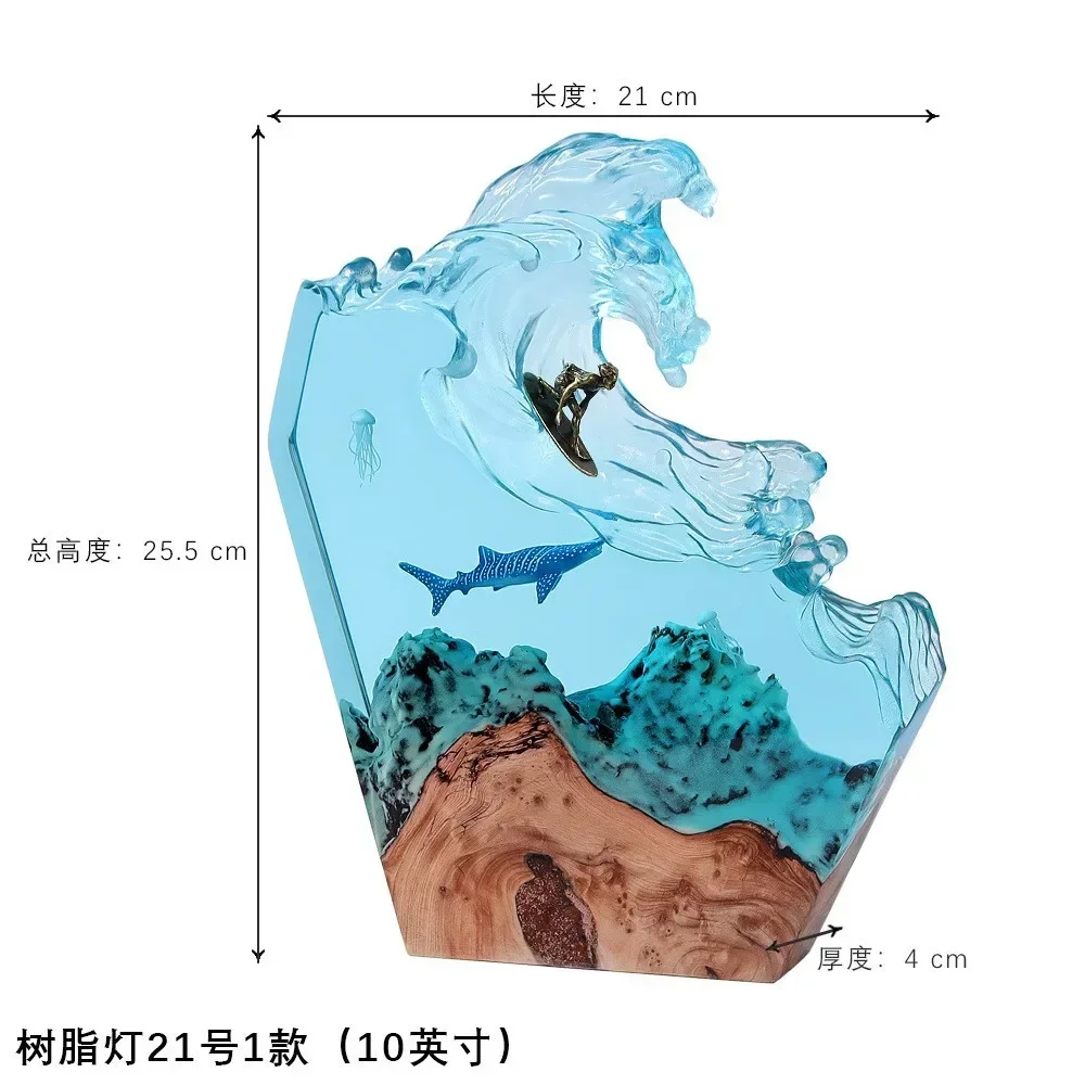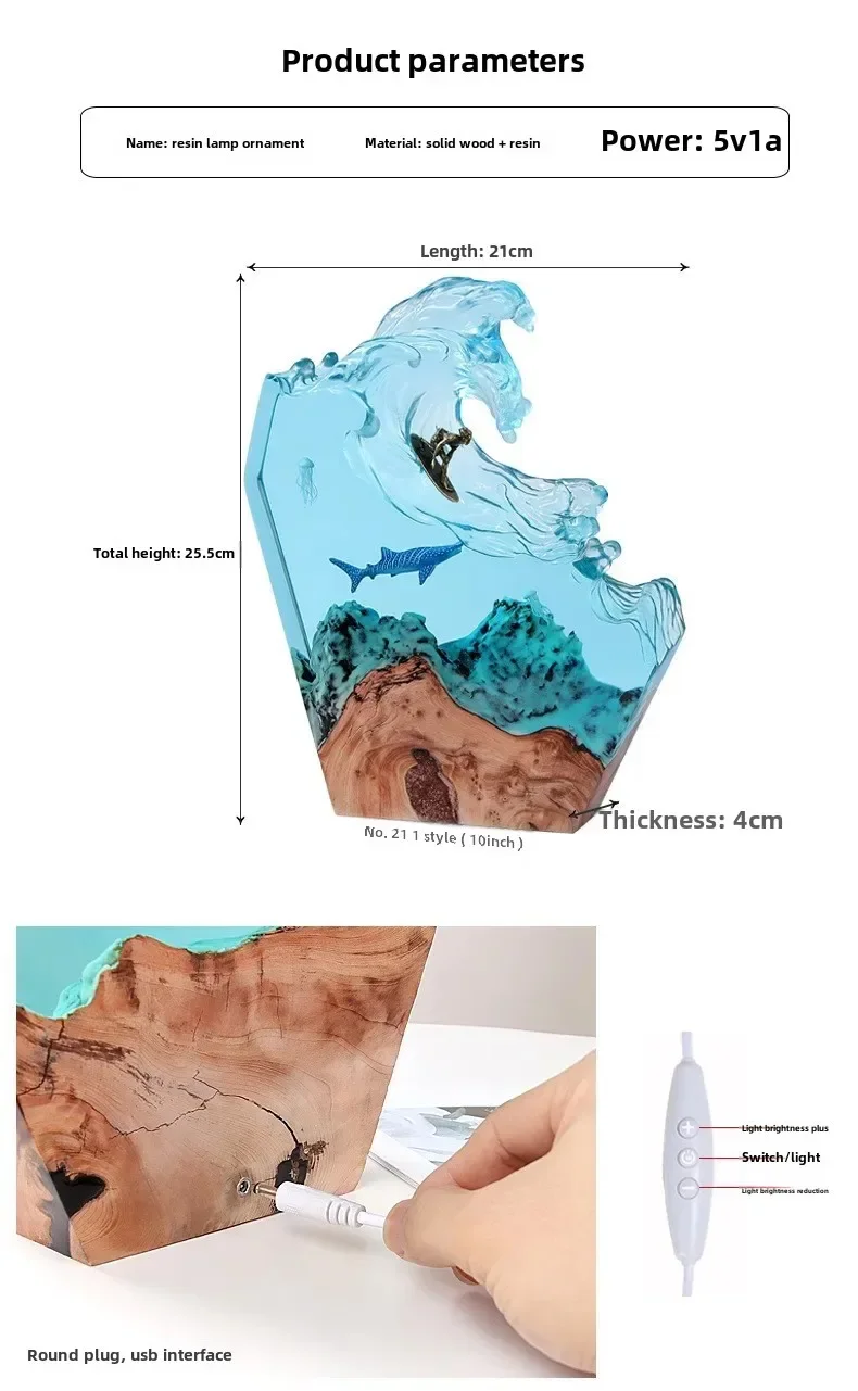 اغمر مساحتك بسحر أعماق المحيط مع هذا المصباح الفريد. يجمع هذا الضوء الليلي بين قاعدة من الخشب المتين وكتلة شفافة من الراتنج لتجسيد مشهد فني يضم الحوت وقنديل البحر. تُعد هذه القطعة زخرفة أثاث مثالية لـسطح المكتب أو أي ركن في المنزل، حيث تمنحك إحساسًا بالهدوء والاسترخاء. إنها ليست مجرد إضاءة، بل حلية فنية يمكن تقديمها كـهدية مميزة لمحبي البحر والجمال الطبيعي.