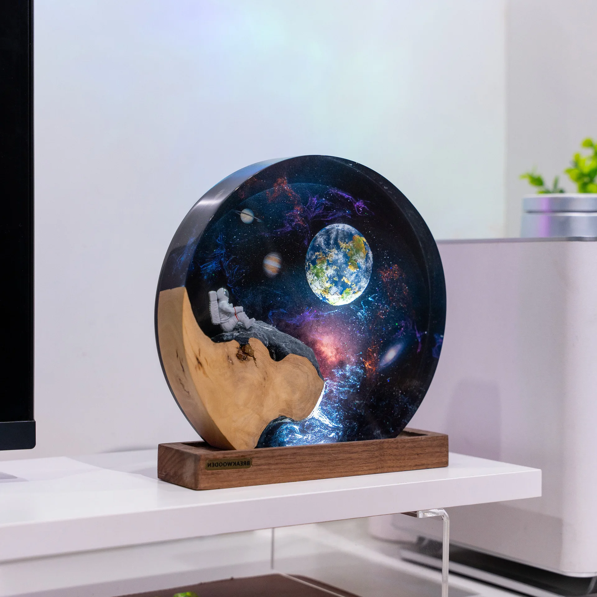 تحفة الفضاء الخارجي مصباح الراتنج العضوي الفن الإبداعي ضوء الليل كرافت كوكب الكون رائد الفضاء المناظر الطبيعية الديكور الجدول مصباح USB