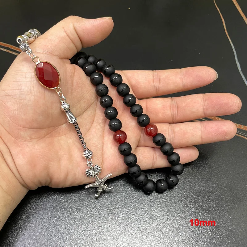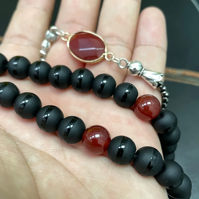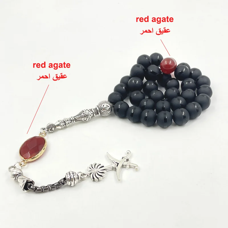 مادة الخرز: كريستال أسود + حجر العقيق