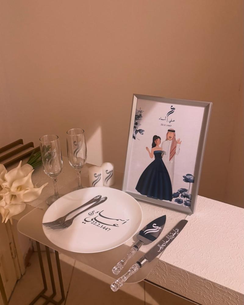 مع الكتابة ( أسماء العرسان والحروف على حسب الطلب يحددان صاحب الطلب مسبقاً الرجاء كتابة الأسماء والأحرف في الملاحظات عند الطلب .