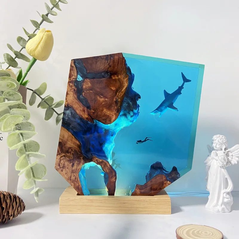 تحفة مصباح تحت سطح البحر استكشاف الراتنج الإبداعية جميلة ليلة ضوء الحرفية المحيط المناظر الطبيعية الديكور USB جو الجدول مصباح